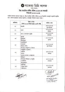 উচ্চ মাধ্যমিক বার্ষিক পরীক্ষা-২০২৪ এর সময়সূচি