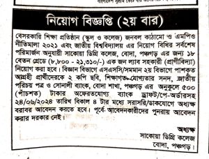 নিয়োগ বিজ্ঞপ্তি (২য় বার)